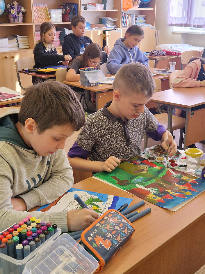 - Очный творческий конкурс: школьники создавали иллюстрации к предложенным отрывкам литературных текстов — фрагментам прочитанных произведений детской художественной литературы.