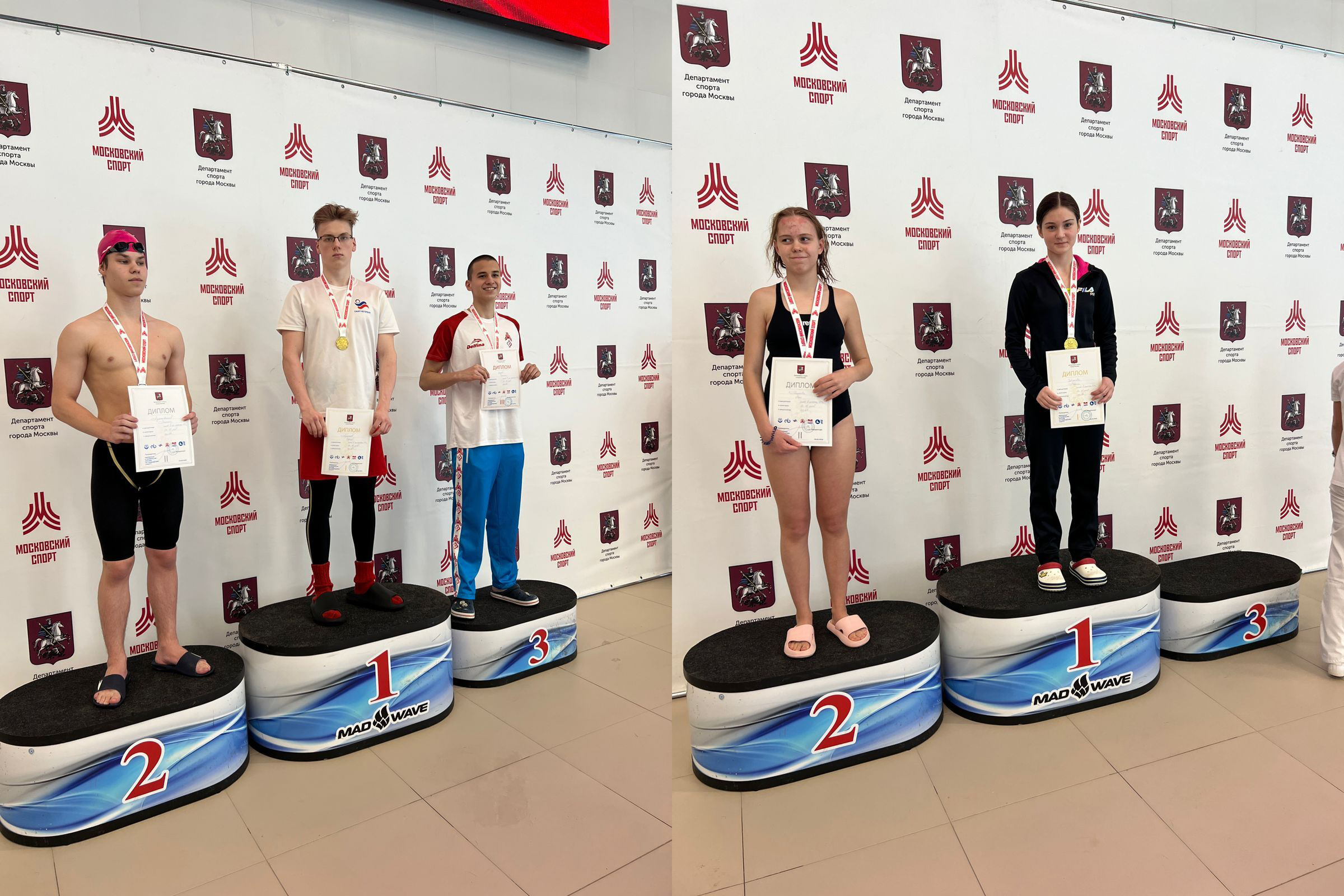 Золотых восхождений на пьедестал не пришлось ждать долго. После первых же дистанций 50 м в классических ластах и 50 м в моноласте воспитанники Спортивного центра МГПУ Сергей Архипов и Мария Савельева уверенно заняли первые места.