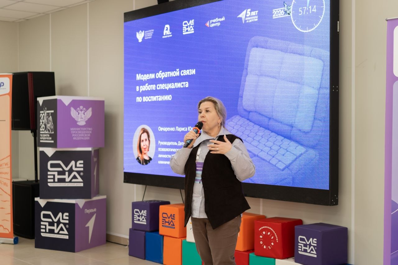 Среди спикеров мероприятия — Лариса Овчаренко, руководитель департамента клинических, психологических и педагогических основ развития личности института психологии и комплексной реабилитации, которая провела серию обучающих мероприятий в рамках семинара‑совещания для советников директора по воспитанию. Ключевая тема её занятий — психология обратной связи.