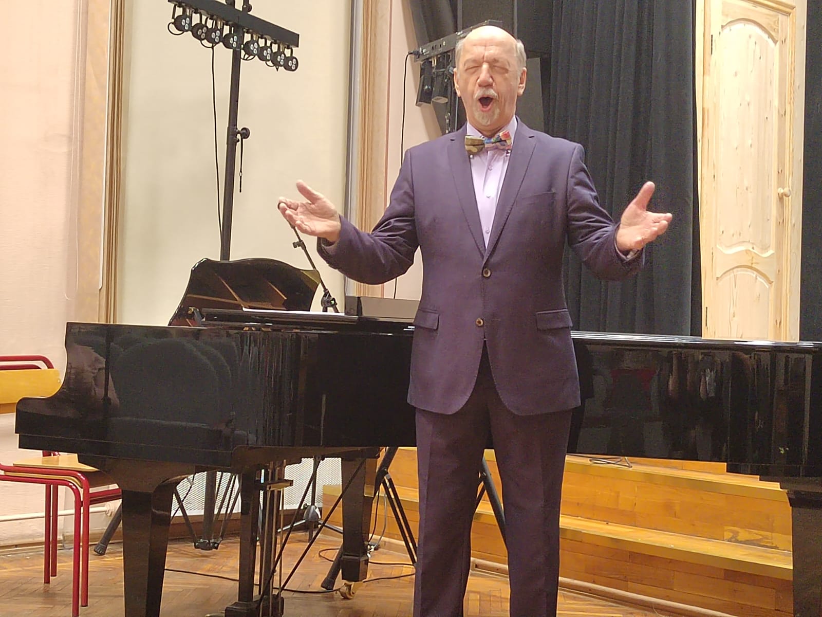 Музыкальное приветствие и поздравление подготовили и студенты Департамента музыкального искусства, выступив на концерте. И, конечно, порадовал зрителей своим вокалом сам маэстро, исполнив несколько вокальных номеров.