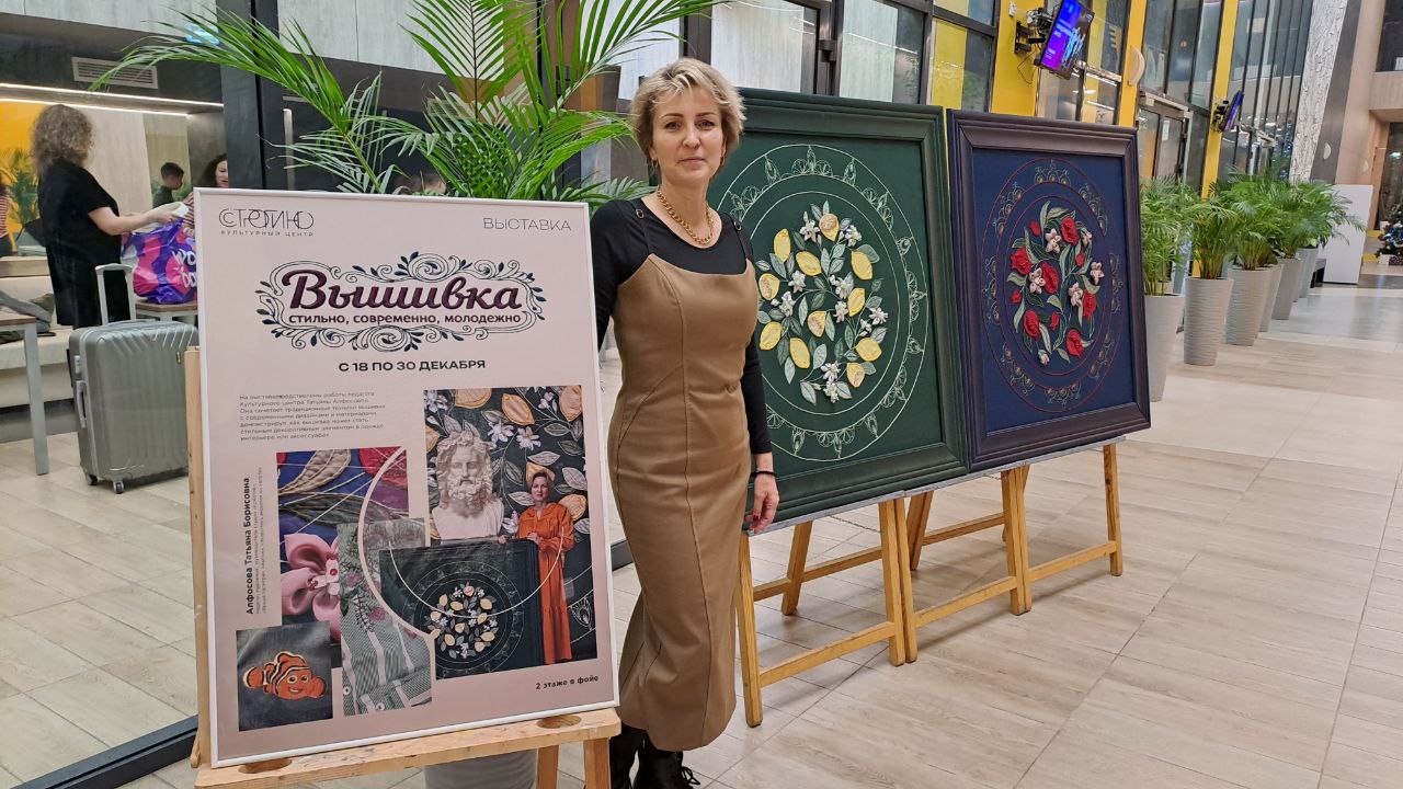 С 18 по 30 декабря 2025 года в Культурном Центре «Строгино» (ул. Маршала Катукова, д. 8) проходит персональная выставка «Вышивка — стильно, современно, молодежно!» (0+). Автор работ — художник и педагог Татьяна Алфосова, руководитель творческих студий центра.