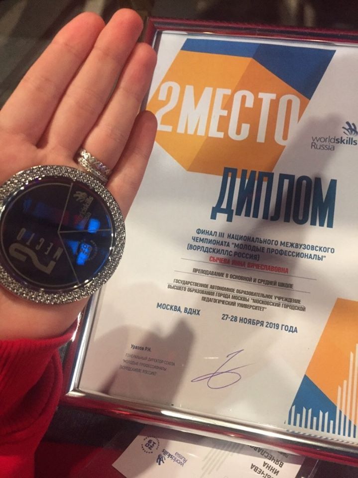 Студентка 4 курса института гуманитарных наук Инна Сычёва завоевала серебро (II место) в номинации «Преподавание в основной и средней школе» в финале чемпионата «Молодые профессионалы» (Ворлдскиллс Россия).