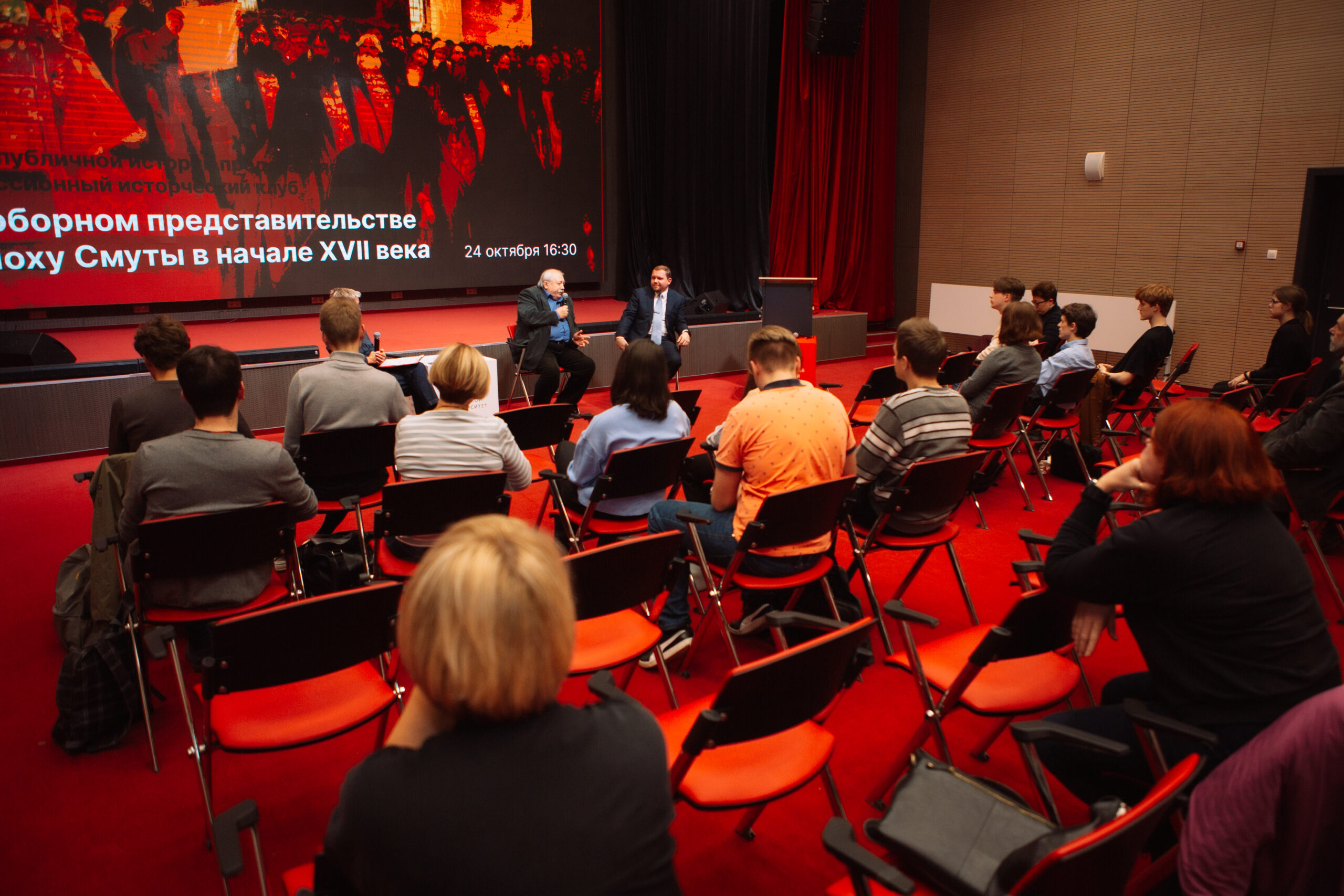 Заседание прошло в формате панельной дискуссии, поэтому слушатели могли задать вопросы спикерам. Студентов интересовали вопросы, связанные с представительством регионов в заседаниях Земского собора, с критериями выбора кандидатов на российский престол в XVII веке, демократическими началами в феномене Земского собора, легитимностью новой династии и другие.