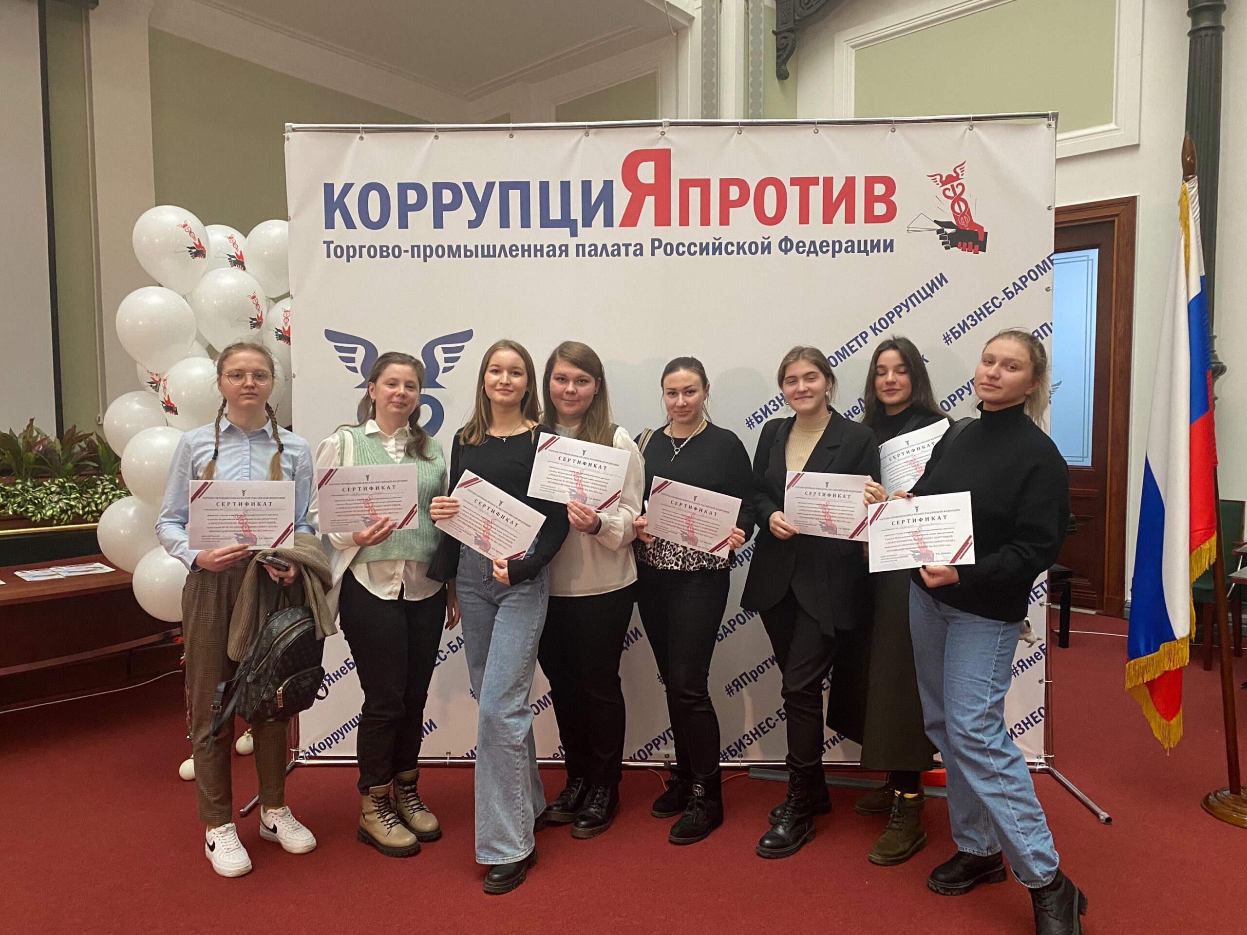 9 декабря 2022 г. в Торгово-промышленной палате РФ в очно-заочном формате прошла Всероссийская интерактивная акция, приуроченную к Международному дню борьбы с коррупцией. В рамках данного мероприятия состоялся антикоррупционный диктант, в котором наряду с представителями бизнес-компаний впервые приняли участие студенты и преподаватели института права и управления. Антикоррупционный диктант стал уникальной возможностью для представителей ИПиУ успешно продемонстрировать свои знания в области антикоррупционного законодательства и практики его применения. Лучший результат среди студентов-экономистов показала Еничева Юлия с числом правильных ответов 65%.